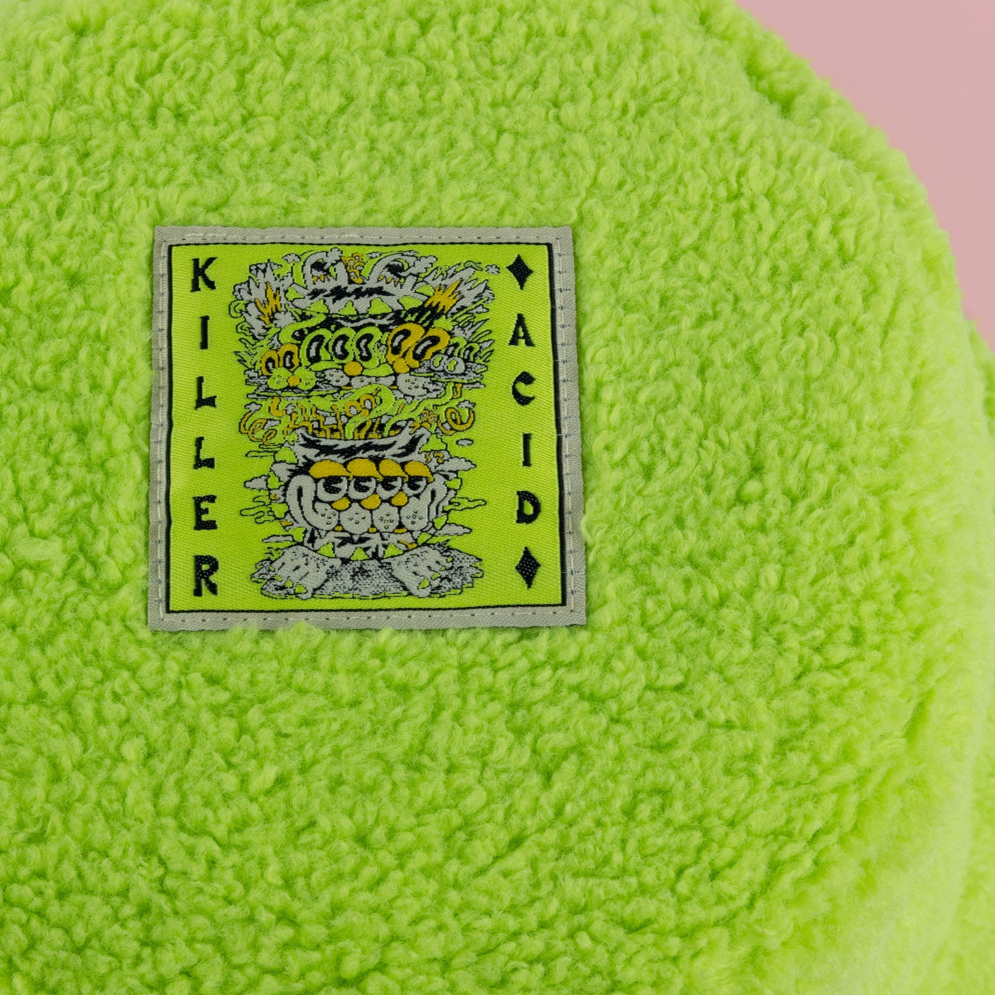 Two hats in one, because commitment is overrated. Flip between lime green fuzzy texture and blue checkered smoothness depending on your mood. Perfect for festivals, beach days, or just protecting your head from the sun while looking slightly unhinged.