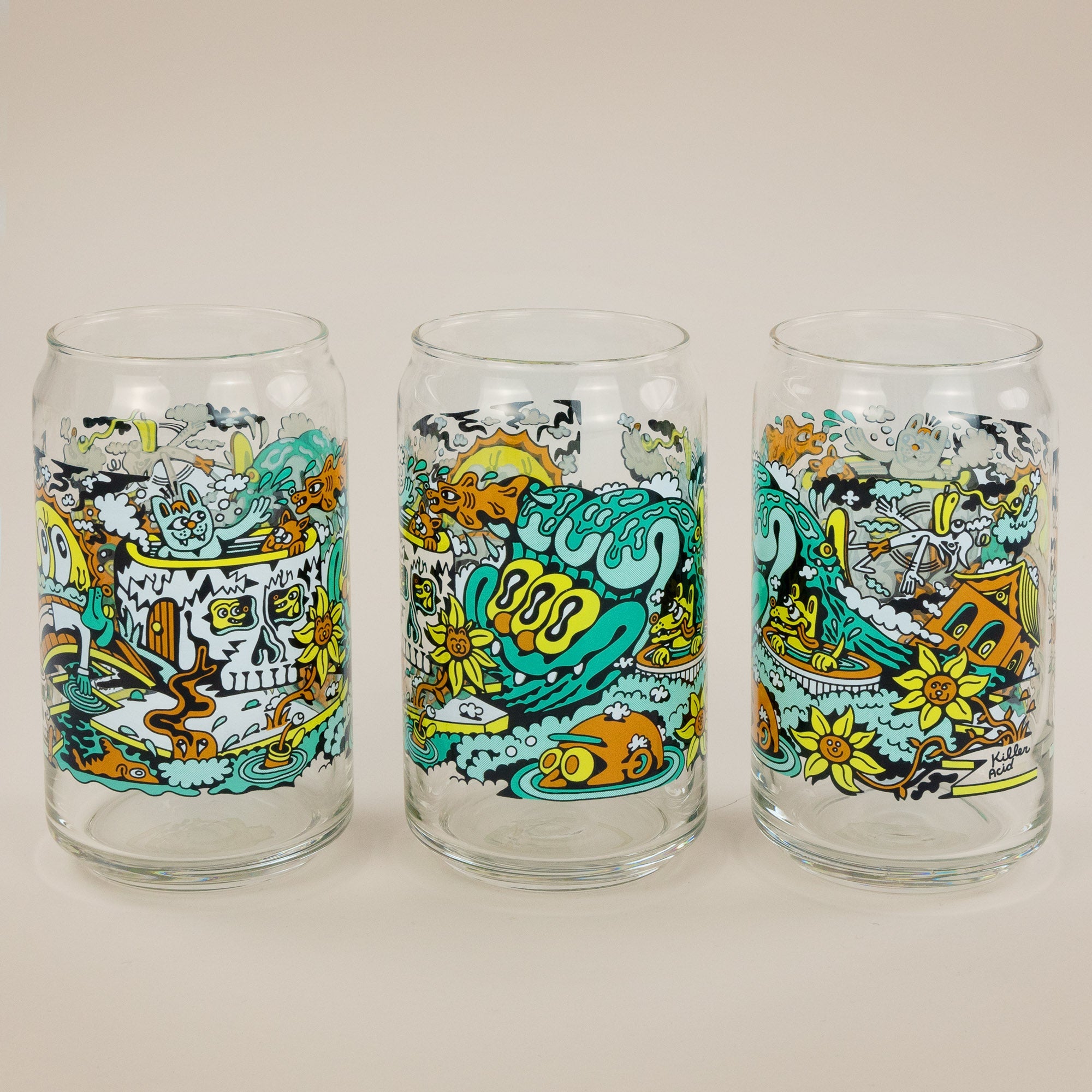 Summer brings the heat and the hallucinations. Melting sunshine, poolside monsters, and that golden hour glow. It's beach day in an alternate dimension where the sun has opinions and the waves have teeth. Peak vacation energy, permanently frozen in glass.