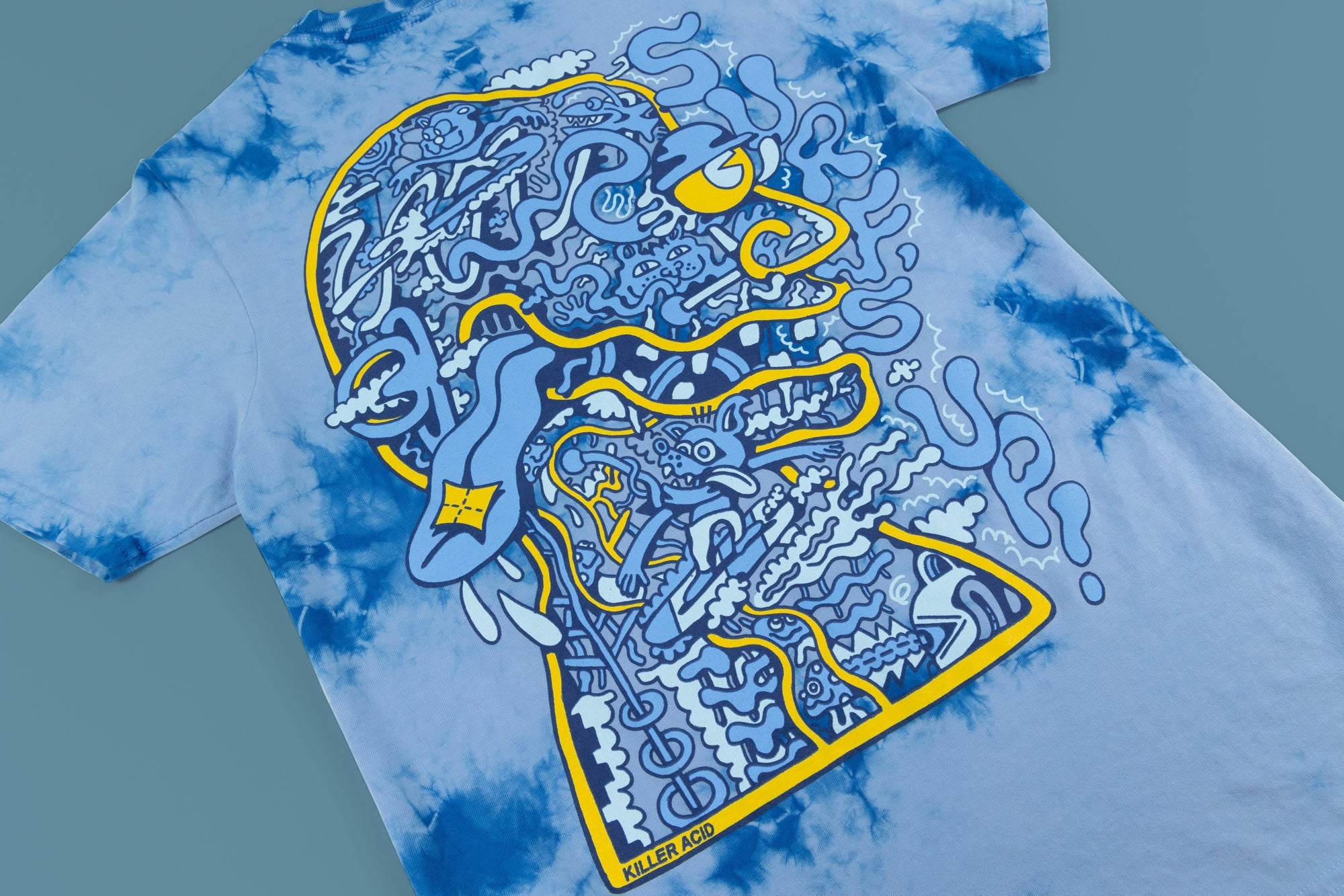 This shirt is custom dyed with a bright crystal wash on a premium heavyweight tee.