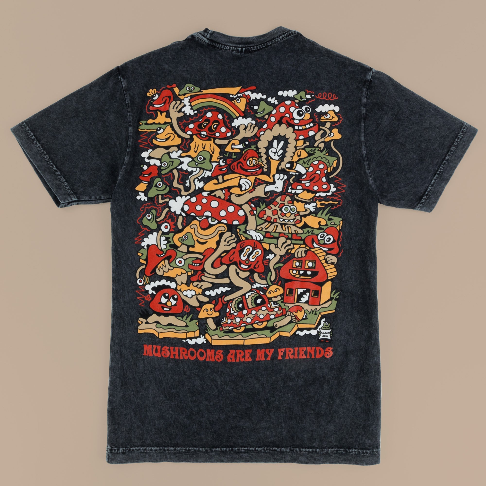 A celebration of fungus friendship in its finest form. This reworked version of one of our most popular designs is packed with grinning mushrooms, frogs, snails, and all the forest floor companions you could ask for. Earth tones, red caps, and endless good vibes. For anyone who's ever felt a deep kinship with nature's little helpers.