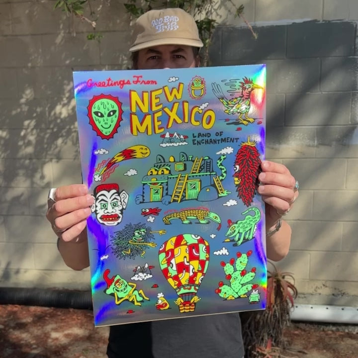 This postcard-perfect design from Killer Acid, in collaboration with Santa Fe arts collective Meow Wolf, celebrates New Mexico’s otherworldly history. It commemorates the Land of Enchantment’s astral visitors, old and new.
