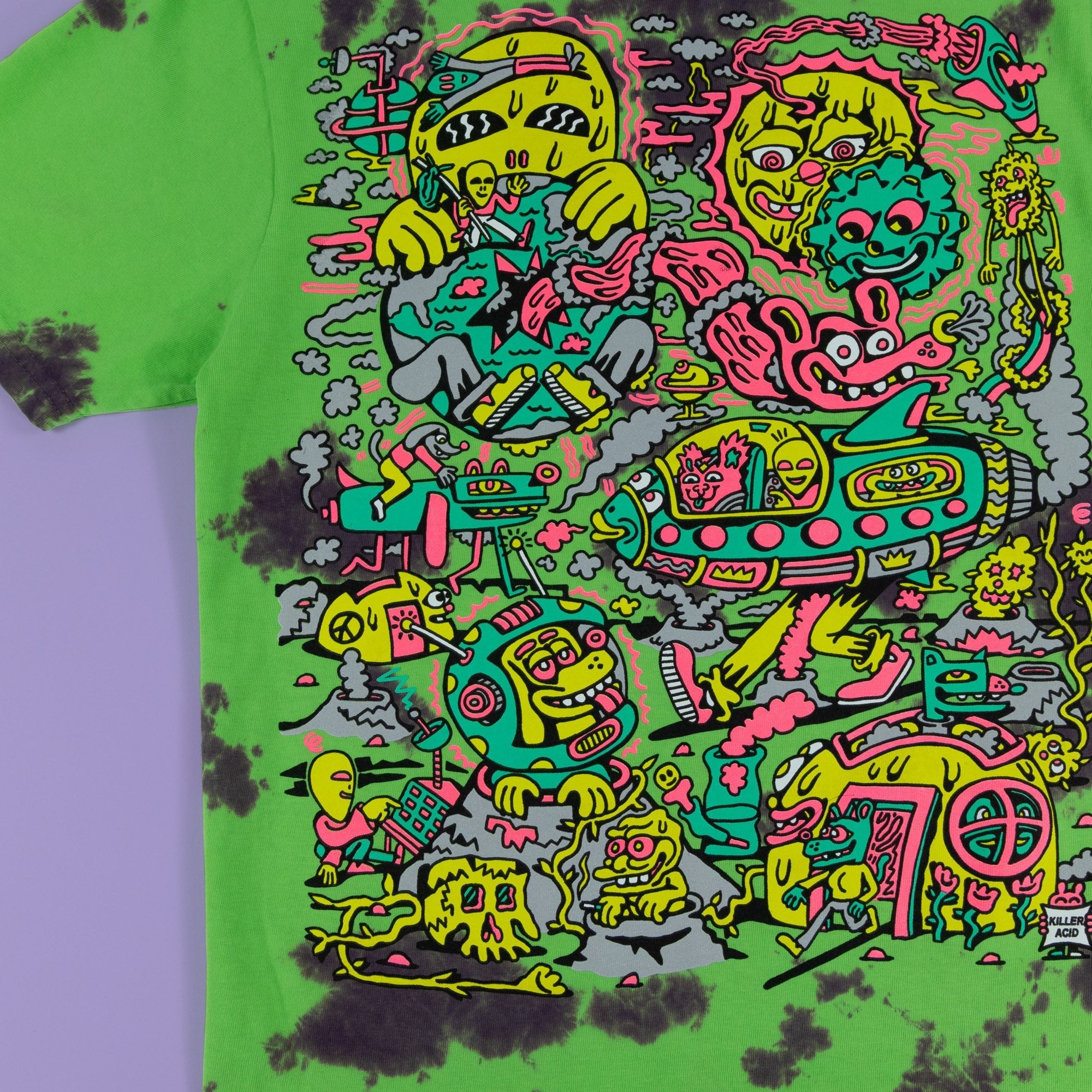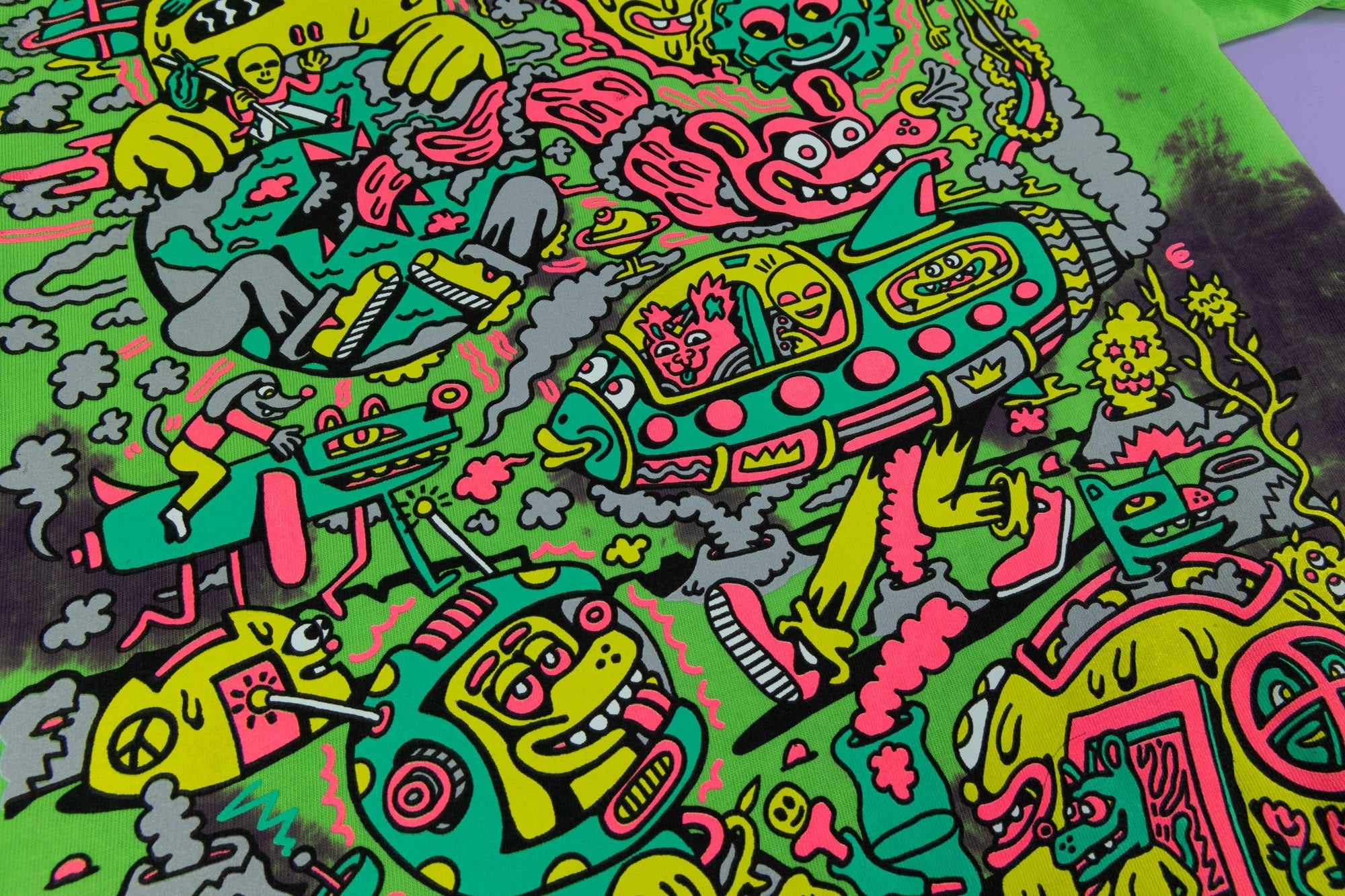 They say it’s lonely out in space, but they are wrong. Look at this place it’s nuts! This shirt is custom dyed with a bright crystal wash on a premium heavyweight tee.